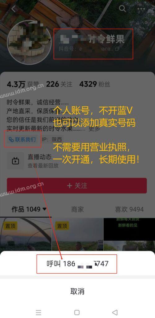 有营业执照,也没开通蓝V,可以在抖音主页添加真实号码吗?